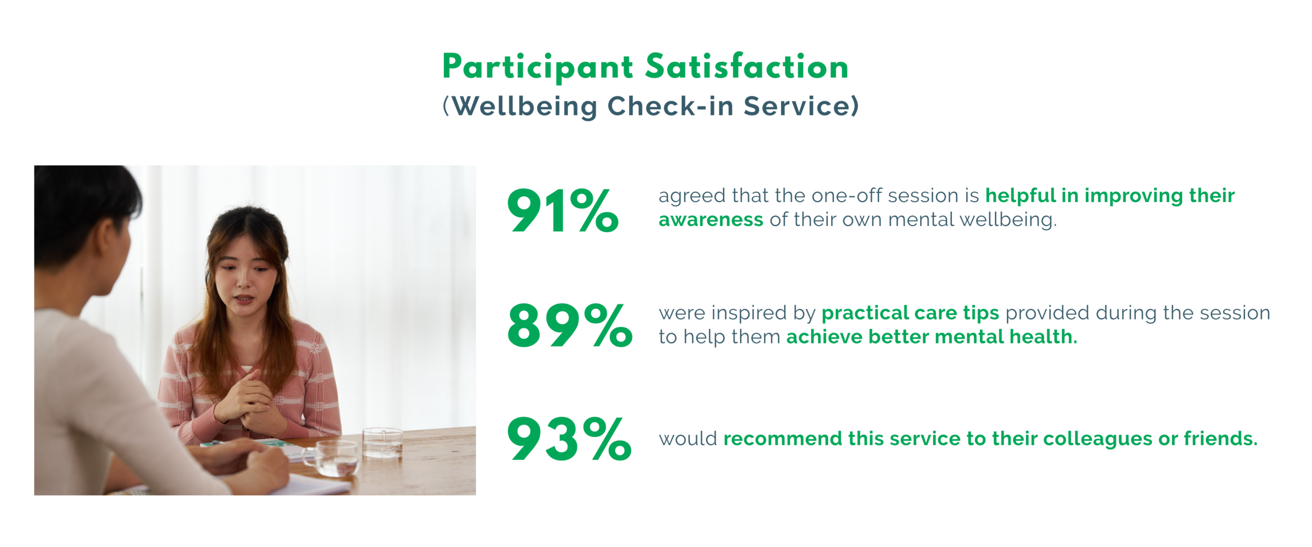 The service, conducted by trained Wellbeing Practitioners, will offer 1-on-1, in-person consultations to help participants better understand their mental health conditions and needs. Each session will last approximately 45 minutes. After the assessment, the Wellbeing Practitioners will evaluate their situations and recommend low-intensity psychological intervention when appropriate, enabling them to take an important step toward improving their mental wellbeing.